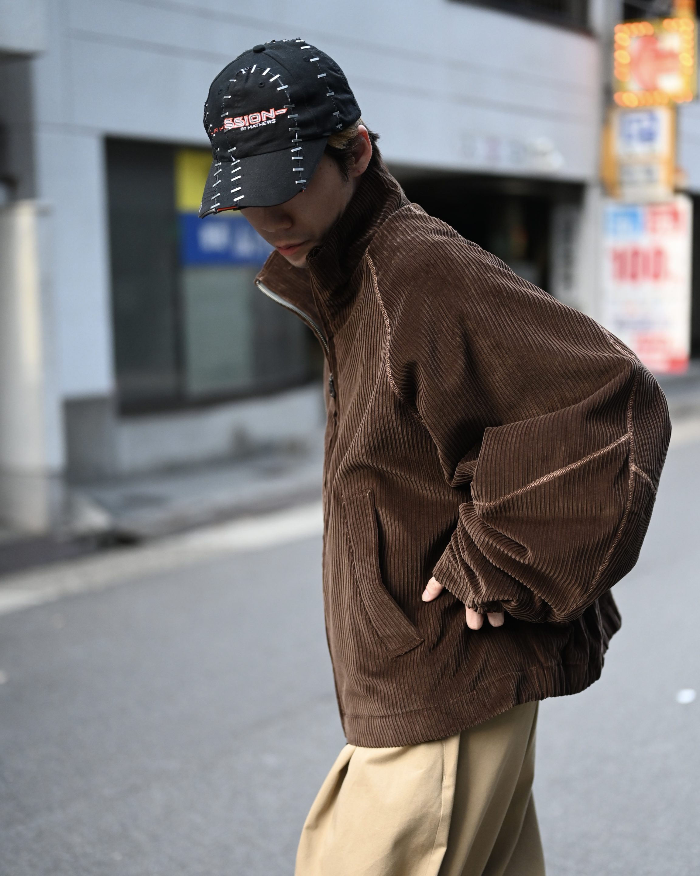 表地は光沢感のある親子コーデュロイ、裏地にはスウェット生地が使用されたしっかりアウターな一着。渋いイメージのあるコーデュロイブルゾンをストリートな雰囲気にまとめあげた、実に<Laid.B>らしいアイテム。