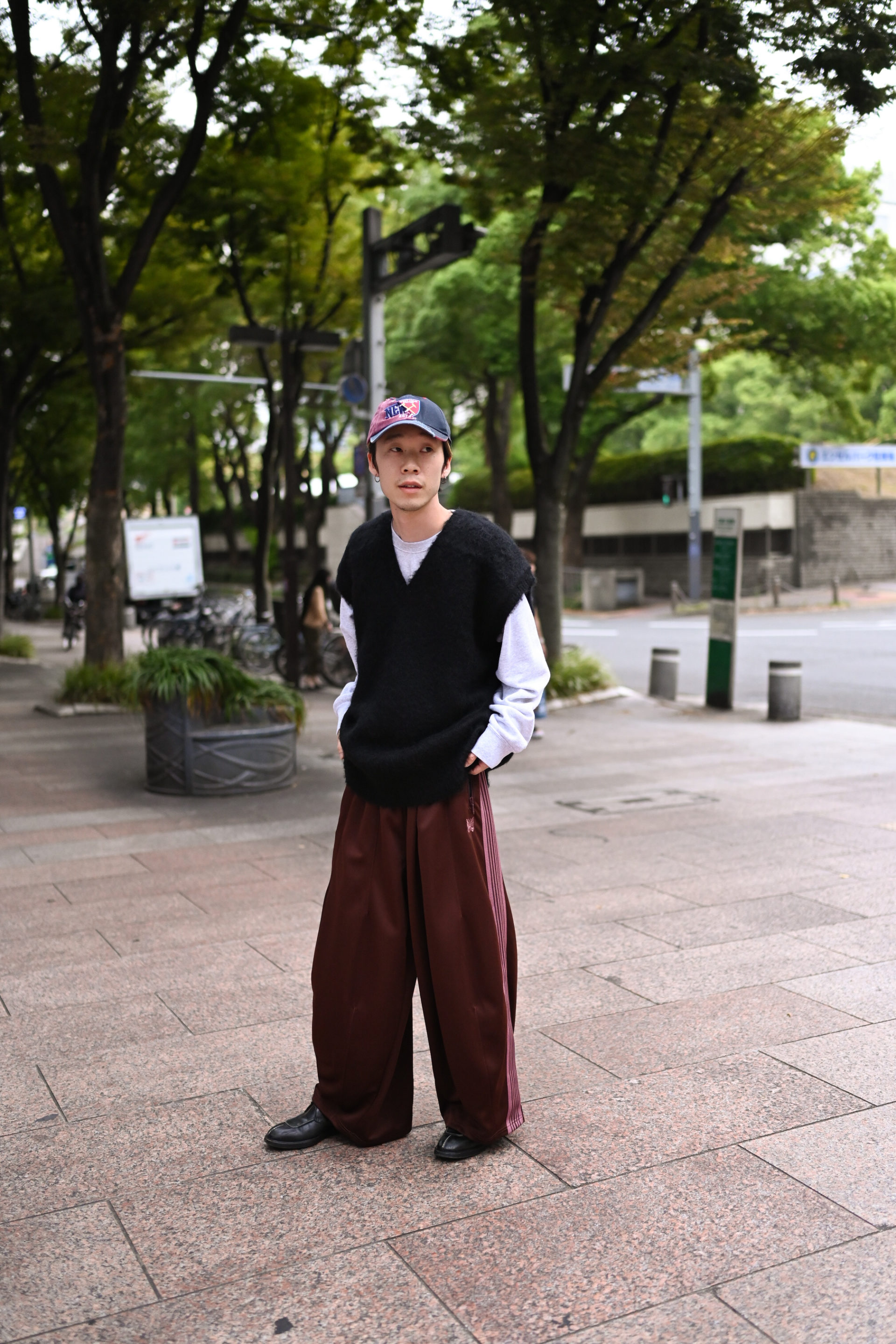 上記でご紹介したH.D. Track Pantsのようなワイドなパンツにはやはりタイトフィットが綺麗なシルエットにまとまります。インナーにスウェットを仕込めるほどのアーム幅なので気温に応じて、ロンTやシャツとのレイヤードなど自由自在。保温性を高めるとともにスタイリングにアクセントをもたらすアイテムです。