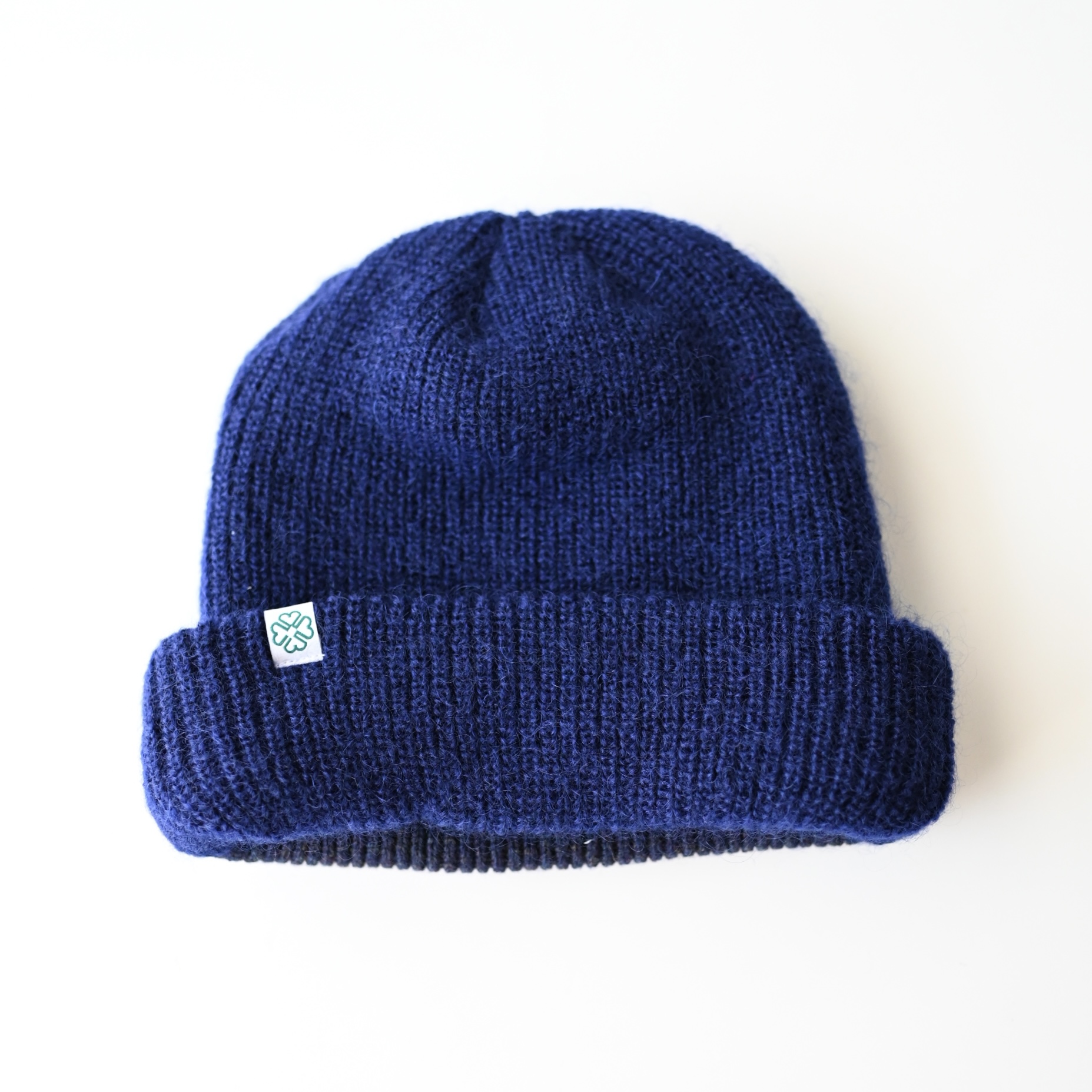 前側には仔羊からしか刈る事ができない非常に柔らかい羊毛糸、後側に若いアンゴラ山羊から刈られた「キッドモヘア」を使用したレイヤードデザインのニット帽。