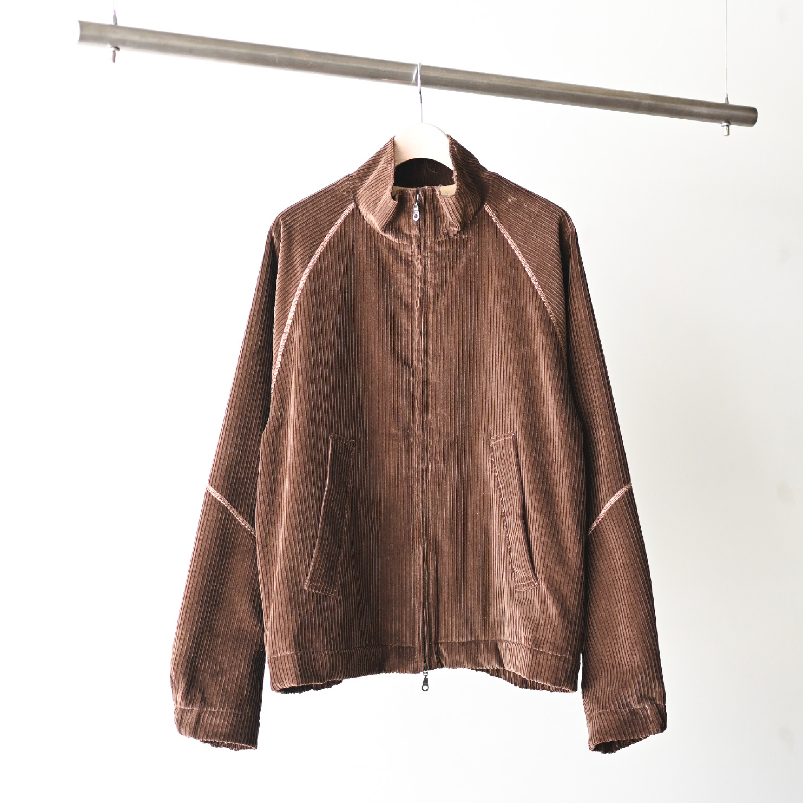 上品なコーデュロイ地、ネックの断ち切り仕様によるラフさとスポーティーな雰囲気の調和が取れた絶妙なバランス感。ストリートなショーツから、クラシカルなチノパンまで羽織ってしまえば成立する安心感。