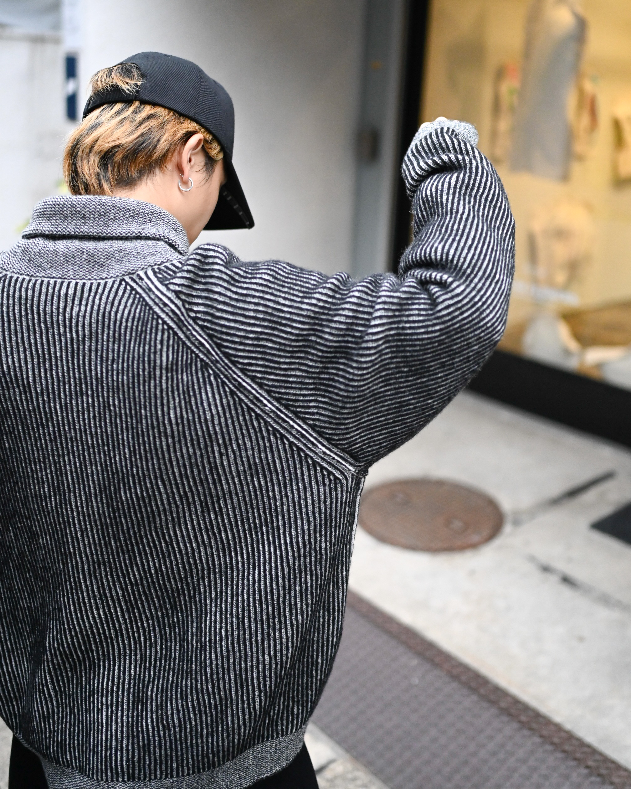 デニムやスウェパンなどあらゆるボトムスに難なく馴染み、ダブルジップやサイジングを活かした”遊び”まで効いた逸品、今シーズンのメインアウターに是非ともオススメしたい仕上がりです。