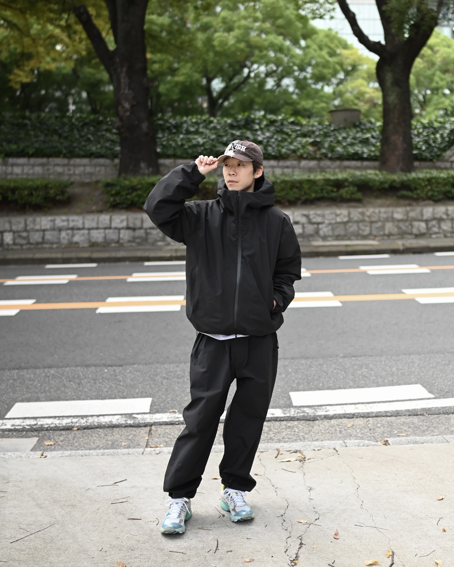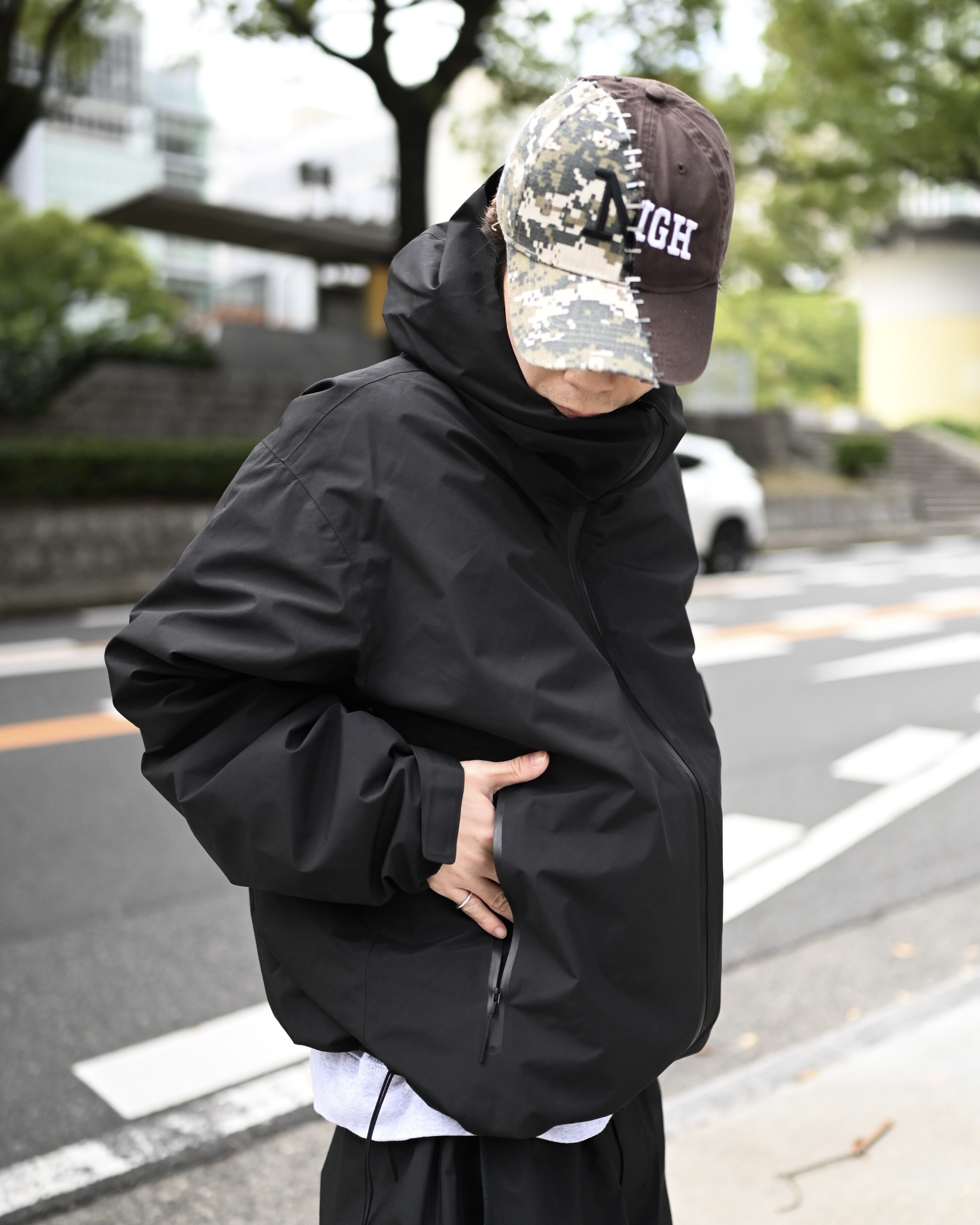 内側から通る紐で身頃を絞っての着用ができる、同ブランドらしいディテールはもちろん、サイドのハンドウォーマーポケットもつけられた真冬も安心な防寒性。