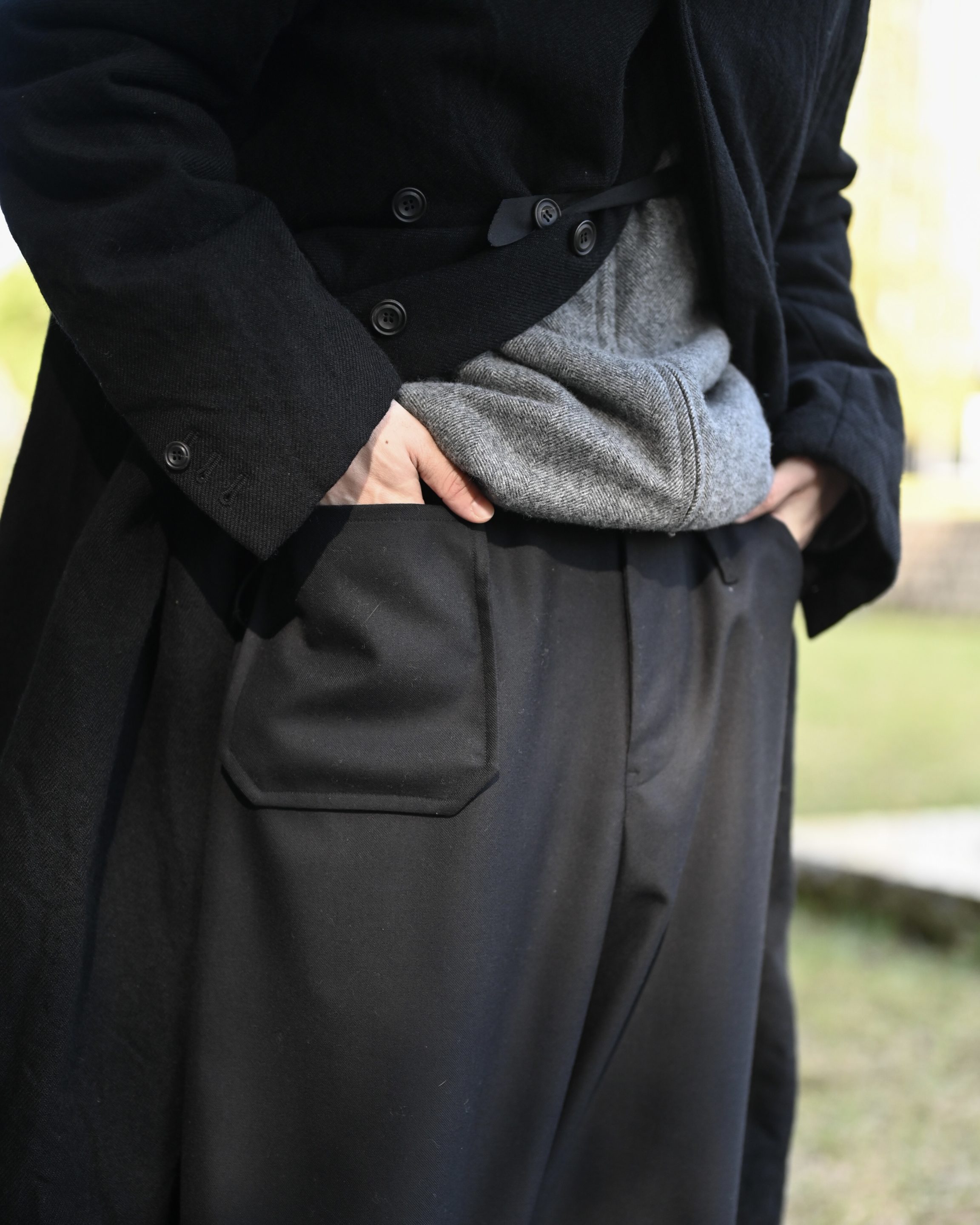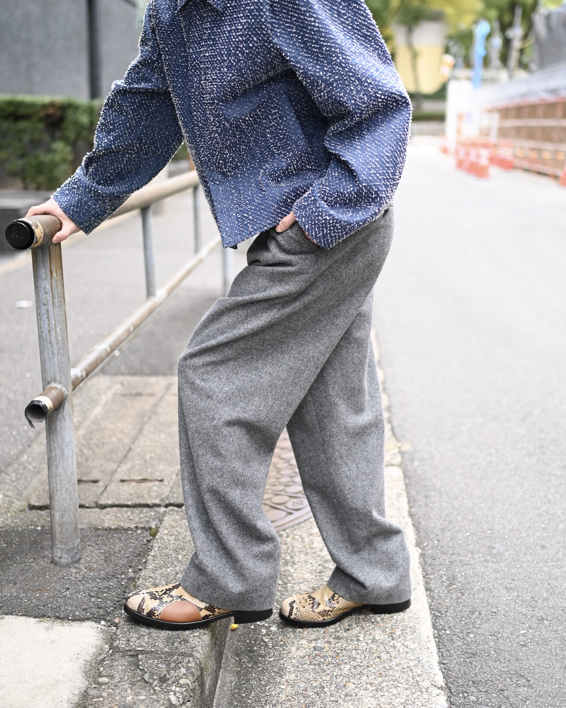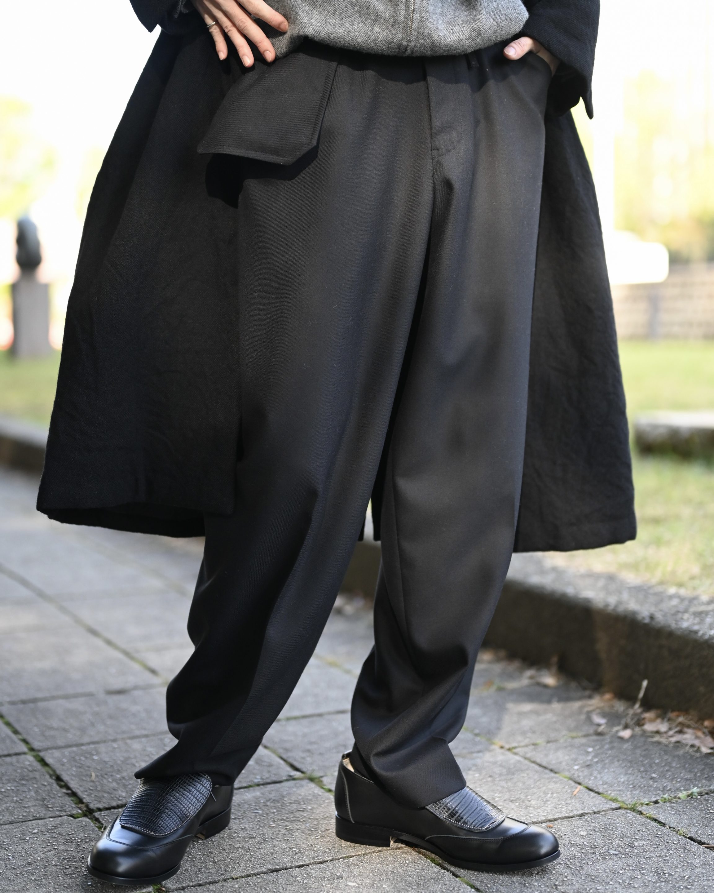 「N.M. THICKENED w/耳 JACKET」のパンツとして、毎シーズン登場するスラックスに新たな形が登場。