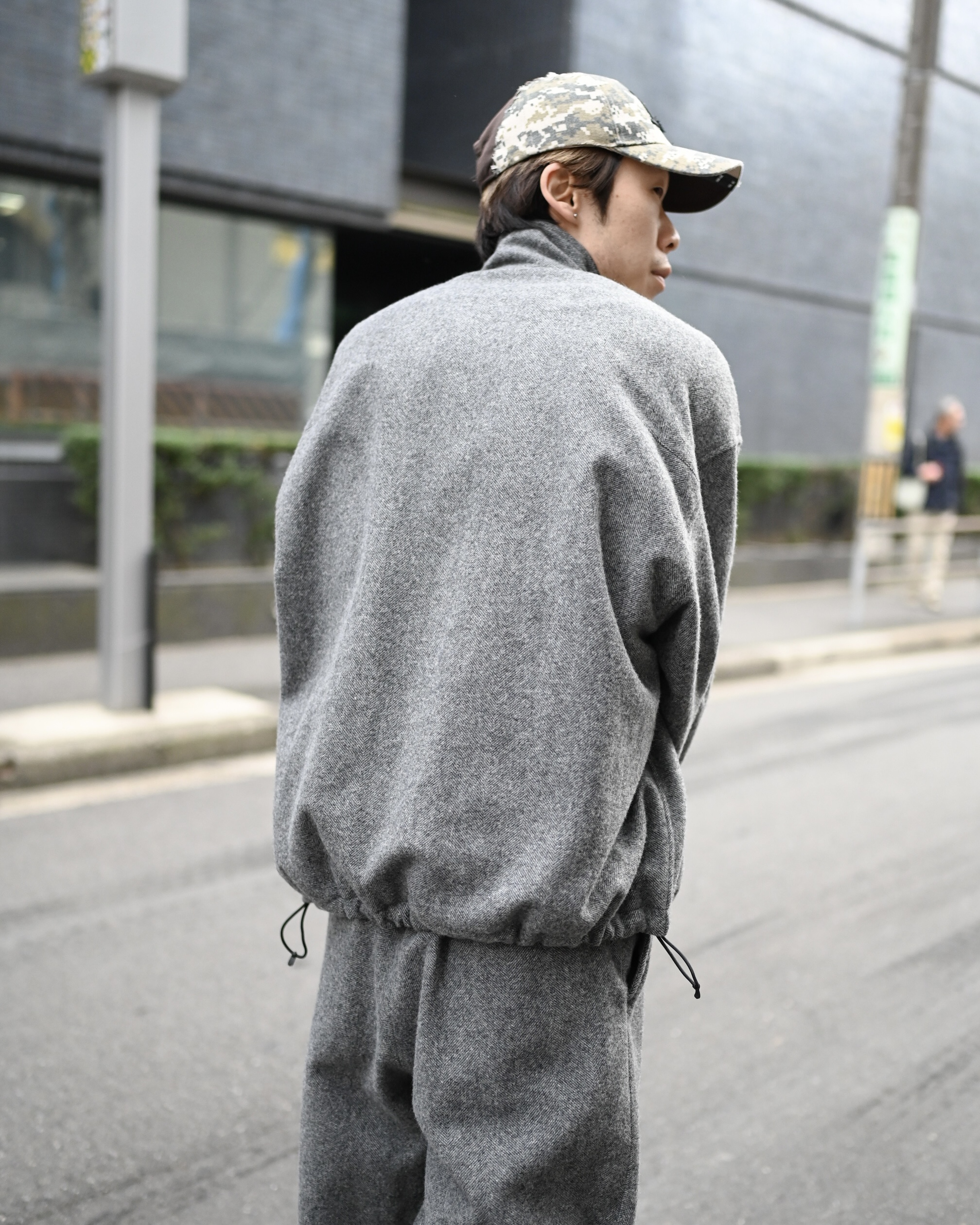 トラックジャケットのようなスポーティーなフォルムをしつつも、上品なカラーとウールの質感、同ブランドらしい袖周りにボリュームを出す大人なシルエットのバランスが整ったアイテム。