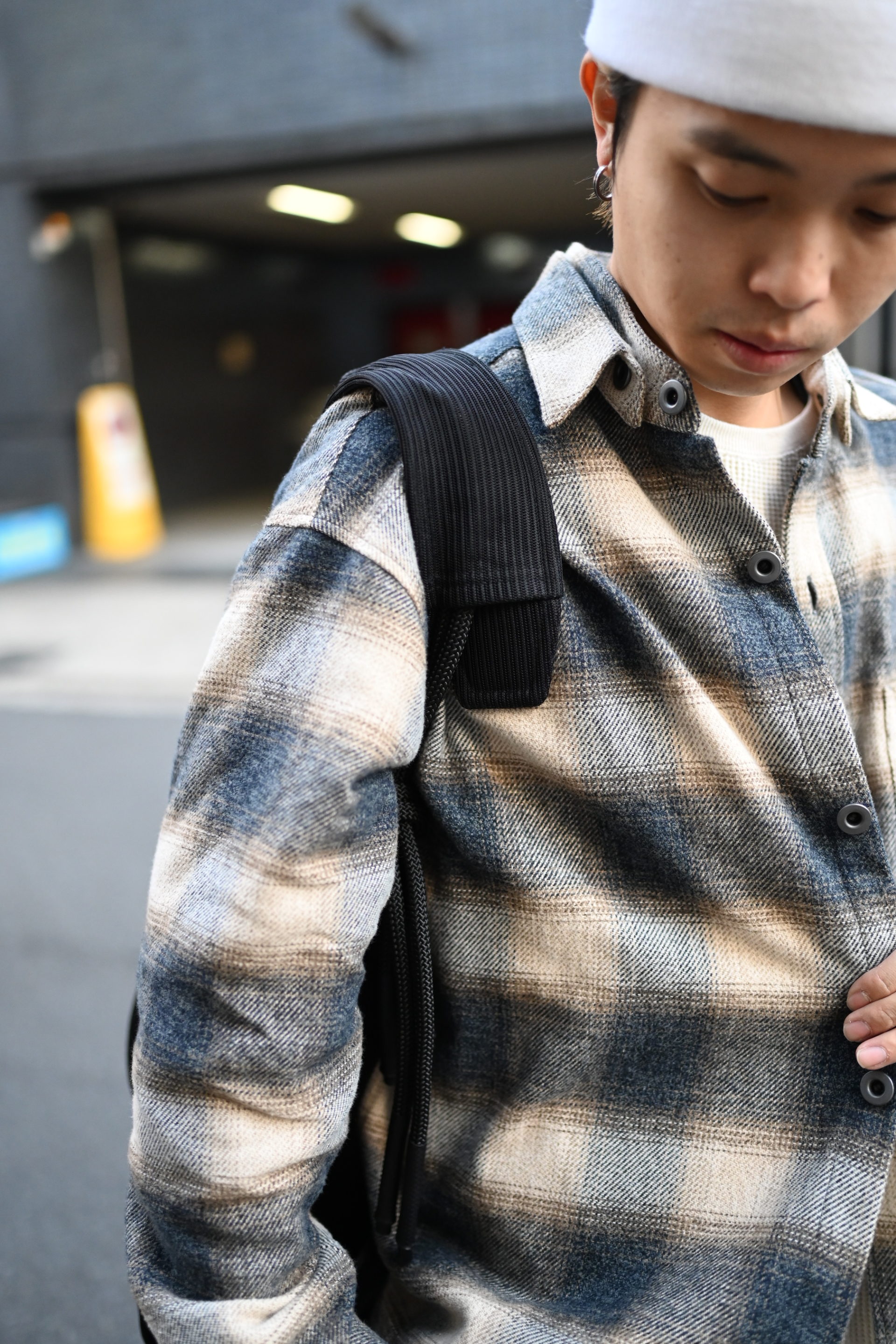 シーンによってショルダーorトートの使い分けができ、様々なスタイリングに異素材のブラックが新鮮に馴染みます。人と被らない唯一無二な存在感とタフな素材なのでガンガン使い込んでください。